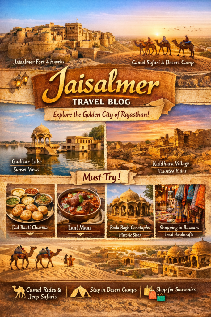 Jaisalmer is one of IndiaтАЩs most magical desert cities тАФ full of golden sandstone architecture, vast Thar Desert landscapes, camel
